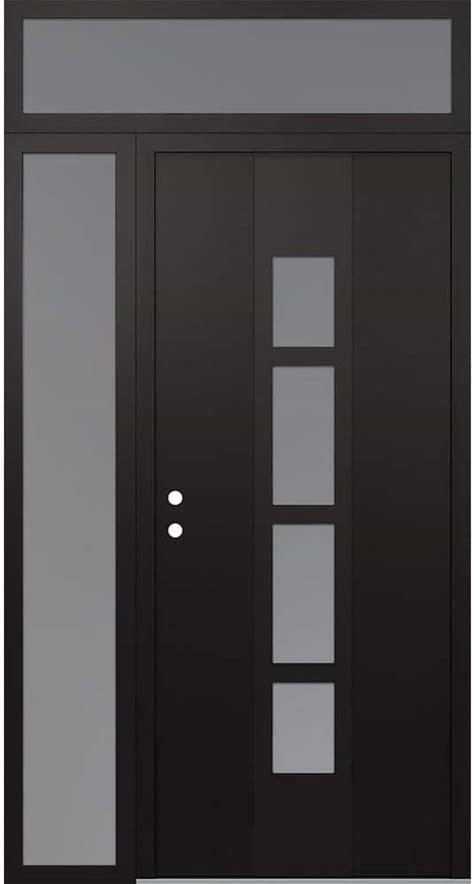 A10 50 in. X 96 in. Black P Right-Hand/Inswing Frosted Glass Black/White Sidelite+Transom Steel Prehung Front Door