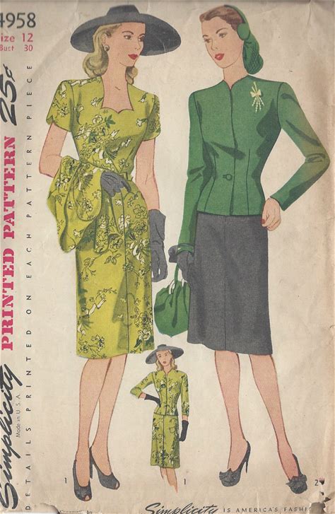 1944 Vintage Sewing Pattern B30 DRESS & JACKET (R649) Simplicity 4958