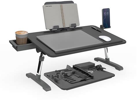 Bed Desk For Laptop, Adjustable Laptop Desk With Foldable Legs Storage Drawer Tablet Slot Removable Stopper, Portable Lap Desk For Writing Working Reading Eating (Large, Gray) Pack Of 2