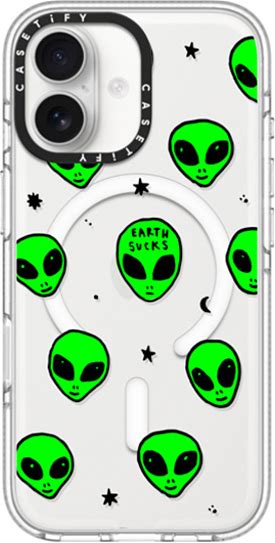 Hyakume X Casetify iPhone 17 Case Clear Impact Clear Case Magsafe Compatible Cute Green UFO Space Alien Drawing Pattern