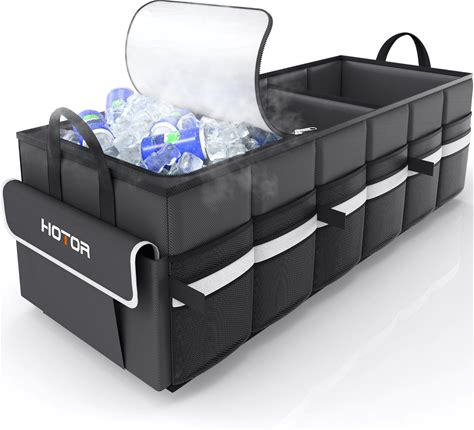 HOTOR Trunk Organizer - Car Organizer With Built-In Leakproof Car Cooler, Collapsible Trunk Organizer With Cooler For Car, SUV, Sedan, With Base Panel