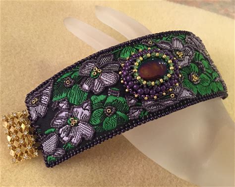 Pattern Tutorial Ribbon Foundation Bead Embroidery Cuff Bracelet With Focal Optional Cup Chain
