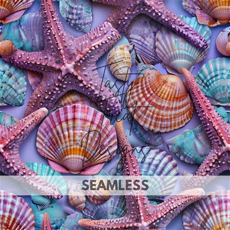 Blue Sea Shells Non Exclusive Seamless Pattern, Coastal Seamless Pattern, Nautical Sea Shells Digital Pattern, Digital Download Pattern