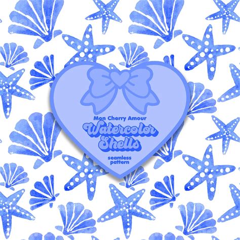 Watercolor Shells Seamless Pattern: Blue Coastal Design (Digital Download)