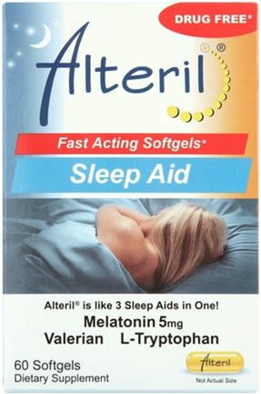 Alteril Sleep Aid Softgels, 60 Ct. 3 Sleep Aids In One, 5Mg Melatonin, L-Tryptophan & Valerian