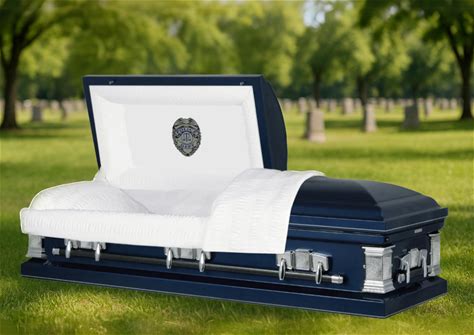 The Officer | Dark Blue Steel Casket With White Interior