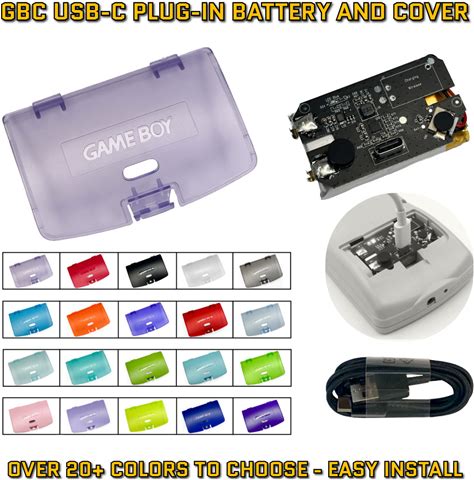 Game Boy Color GBC Rechargeable Battery USB-C 1500 Mah 3.7 V W/ Battery Cover