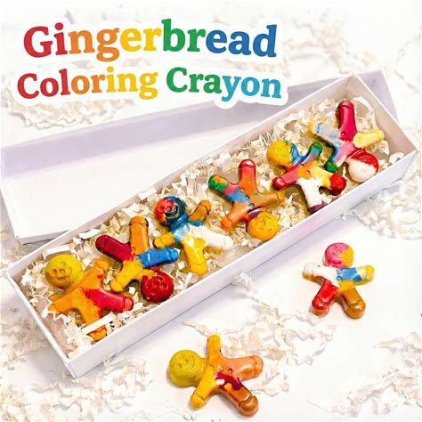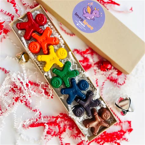 Rainbow Gingerbread Coloring Crayons Set Of 6 - Christmas Stocking Filler & Party Favor For Kids
