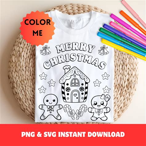 Christmas Coloring T-Shirt SVG PNG For Kids & Toddlers - Perfect Gingerbread Merry Christmas Gift For Boys, Girls, Siblings, Cousins, Twins