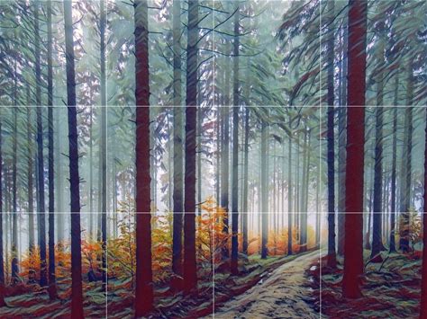 Misty Forest Tile Mural: Colorful Nature Art, Gloss Ceramic Panel
