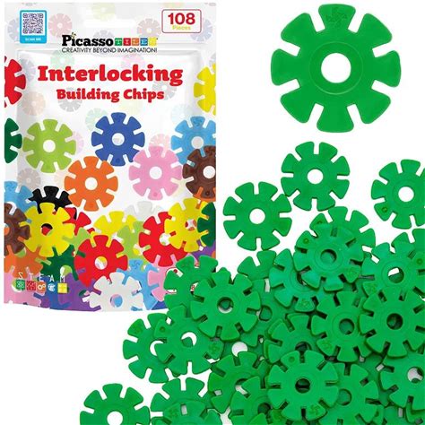 Picassotiles 108 PC Light Green Interlocking Plastic Disc, Building Chip Blocks Toy Set For Kids 3+, Multicolor