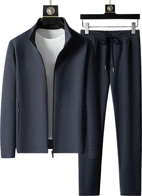 Men's Tracksuit Set - Casual Fit - High Collar - Adjustable Waist - Breathable Design