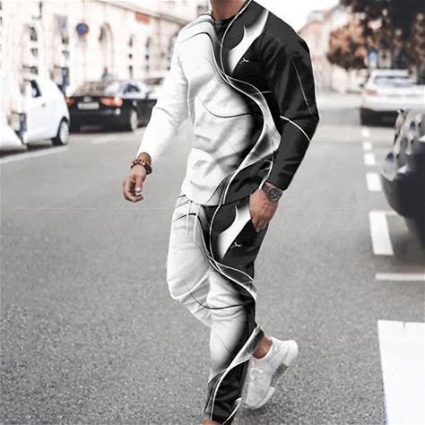 Men's Graphic Color Block 2Pcs 3D Sweatshirt Sets Tracksuit Long Sleeve Long Pants Crew Neck Streetwear Sportswear Basic Sports & Outdoor Casual Sport