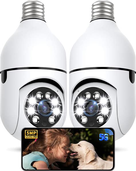 Light Bulb Security Camera 2 Packs, 5G&2.4Ghz 5MP Security Cameras Wireless Outdoor 360° PTZ Cameras For Home Security With Color Night Vision, 2 Way