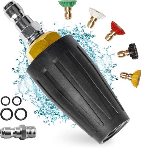 Mudder 4000 Psi Pressure Washer Rotating Turbo Nozzle 4.0 Gpm Quick Connector Turbo Nozzle With 7 Pieces Spray Tips Kit Multiple Degrees (0, 15, 25,