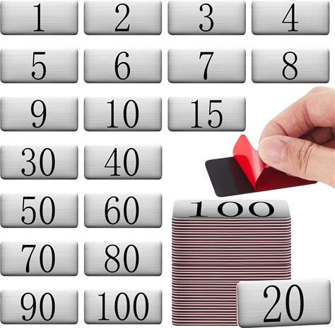 Yaocom 100 Pcs Aluminum Numbered Tags Metal Rectangle Locker Number Key Tag 2.4 X 1 Inch Small Label Door Sign House Number Plates With Self-Adhesive