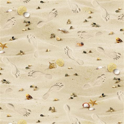 Seashells And Footprints Sand Quilt Cotton Fabric From Landscape Medley Collection By Elizabeth's Studio - 290SAND - Continuous 1/2 Yard