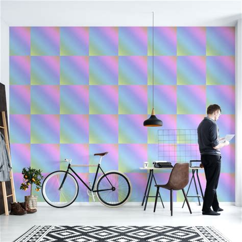 Bold Pastel Rainbow Gradient Square Pattern Wallpaper