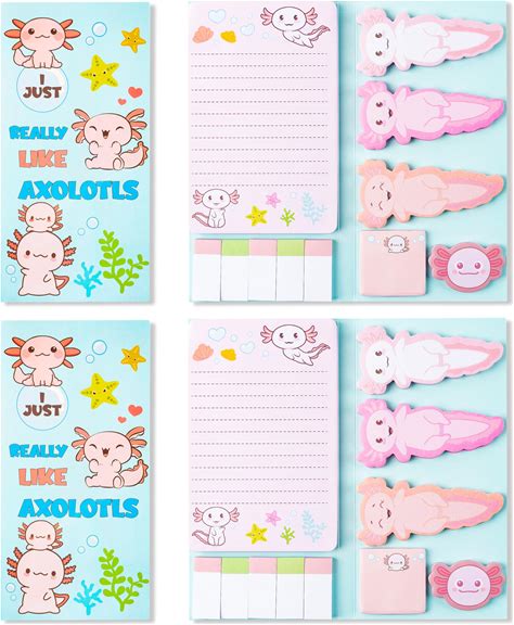 Xqumoi I Just Really Like Axolotl Sticky Notes Set, 550 Sheets, Animal Mexican Walking Fish Shaped Self-Stick Notes Pads Divider Tabs Bundle Writing