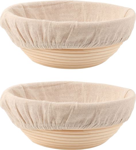 DOYOLLA Bread Proofing Baskets Set Of 2 8.5 Inch Round Dough Proofing Bowls W/Liners Perfect For Home Sourdough Bakers Baking